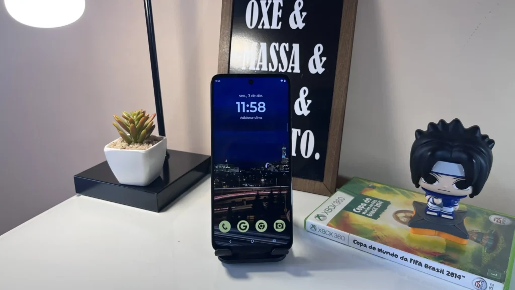 Tirando da tomada 07:00 e usando durante o dia só pra conferir mensagens e ver redes sociais, à noite ainda restaram 55% da bateria. É uma autonomia confiável, sem grandes preocupações no dia a dia.