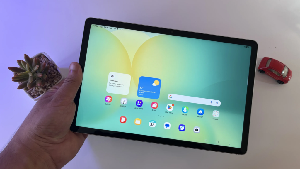 Ele vem com processador Exynos 1380, até 8 GB de RAM e já acompanha a S Pen na caixa. A caneta da Samsung é um grande diferencial: não precisa de bateria, tem ótima precisão e funciona muito bem para anotações e desenhos casuais.