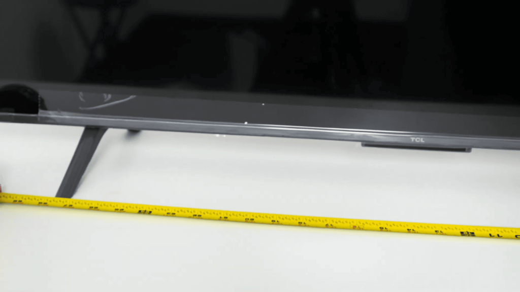 O design da TV é bem bonito e discreto e temos bordas finas, uma pequena faixa com o logo da TCL na parte debaixo e bases no formato triangular. A TV também é bem fina e conta com acabamentos em metal. Segue o padrão de mercado, mas não deixa de ter um visual agradável.